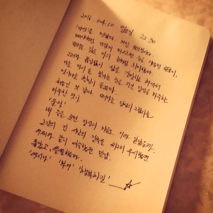 오늘, 이전에 당신이 써주었던 편지의 한 구절이 이해가 되었다. 모든 말을 글로 풀지 않겠다는 당신의 편지. 그 말을 이해하지 못했던 지난 시간의 어린 나. 그래서 외로웠을 당신. 여전히 당신을 떠올리면 아프다.