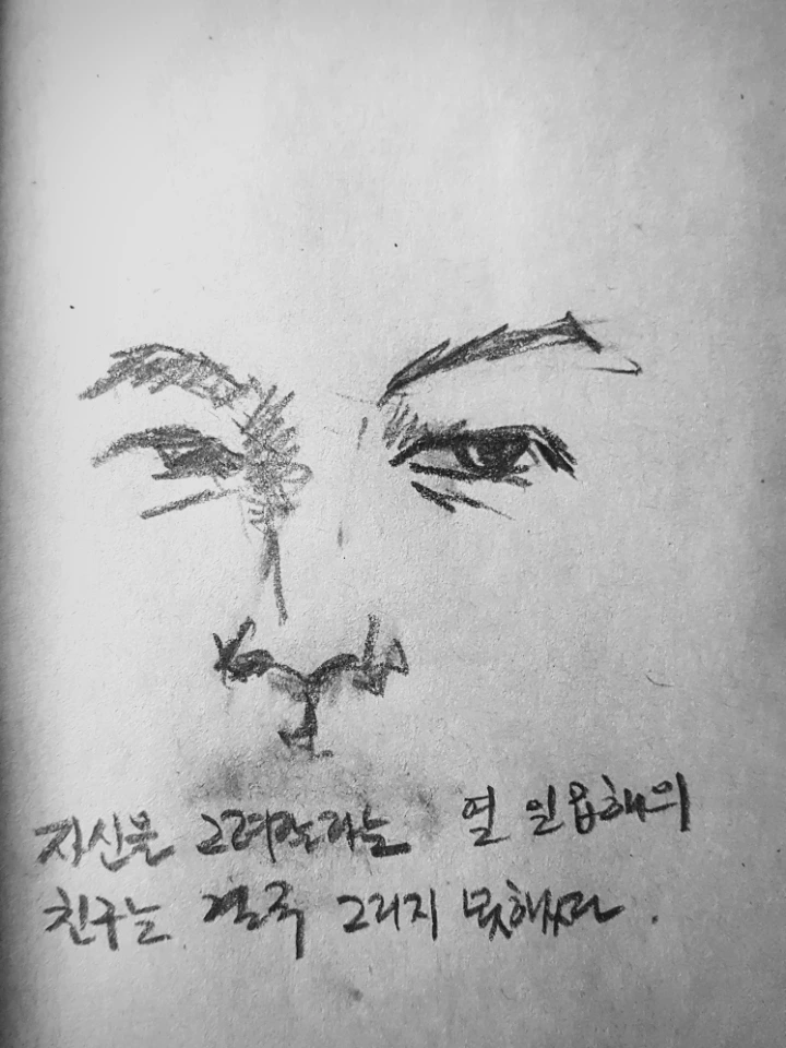 며칠 전 친구가 누구의 그림을 보고 내 그림이 생각났다며 자신을 그려달라고 했었다. 그 후로 틈틈이 그의 얼굴을 그리려 노력을 해 봤는데, 영 쉽지 않았다. 버린 종이만 열 장은 넘을 것이다. 다시금 불면의 밤을 보내는 며칠, 잠이 오지 않아 베개를 깔고 엎드려 그의 얼굴을 다시 그려보았다. 그렸다 지웠다를 수 번, 결국엔 미완의 얼굴로 남았다. 그는. 열 일곱 해를 알고 지낸 사람이다. 그러나 처음으로 얼굴을 들여다본 것 같았다. 그는 생각보다 소년의 얼굴을 가지고 있었고, 그의 눈매는 견고했으며, 눈동자는 공허했다. 그는 생각보다 문학적인 얼굴을 가지고 있었고, 앙 다문 입의 꼬리는 예뻤다. 내가 그간 알고 지낸 얼굴과 들여다본 얼굴의 간극이 점차 벌어지니 결국 종이 위의 선들이 엉키고 말았다. 이전엔 얼굴이 그려지지 않았을 때, 그 얼굴에 특징이 없다고 생각을 했는데, 지금을 기점으로 그 생각을 정정해야겠다. 내가 보지 못 한 것이다. 그 얼굴을. 모든 얼굴은 특별하다. 그의 얼굴도 특별하다. 내가 그간 보지 못했을 뿐이다. 아마 앞으로 더 잘 볼 수 있지 않을까. 조만간 미완의 얼굴을 완성할 수 있지 않을까 싶다. 잘 자라.