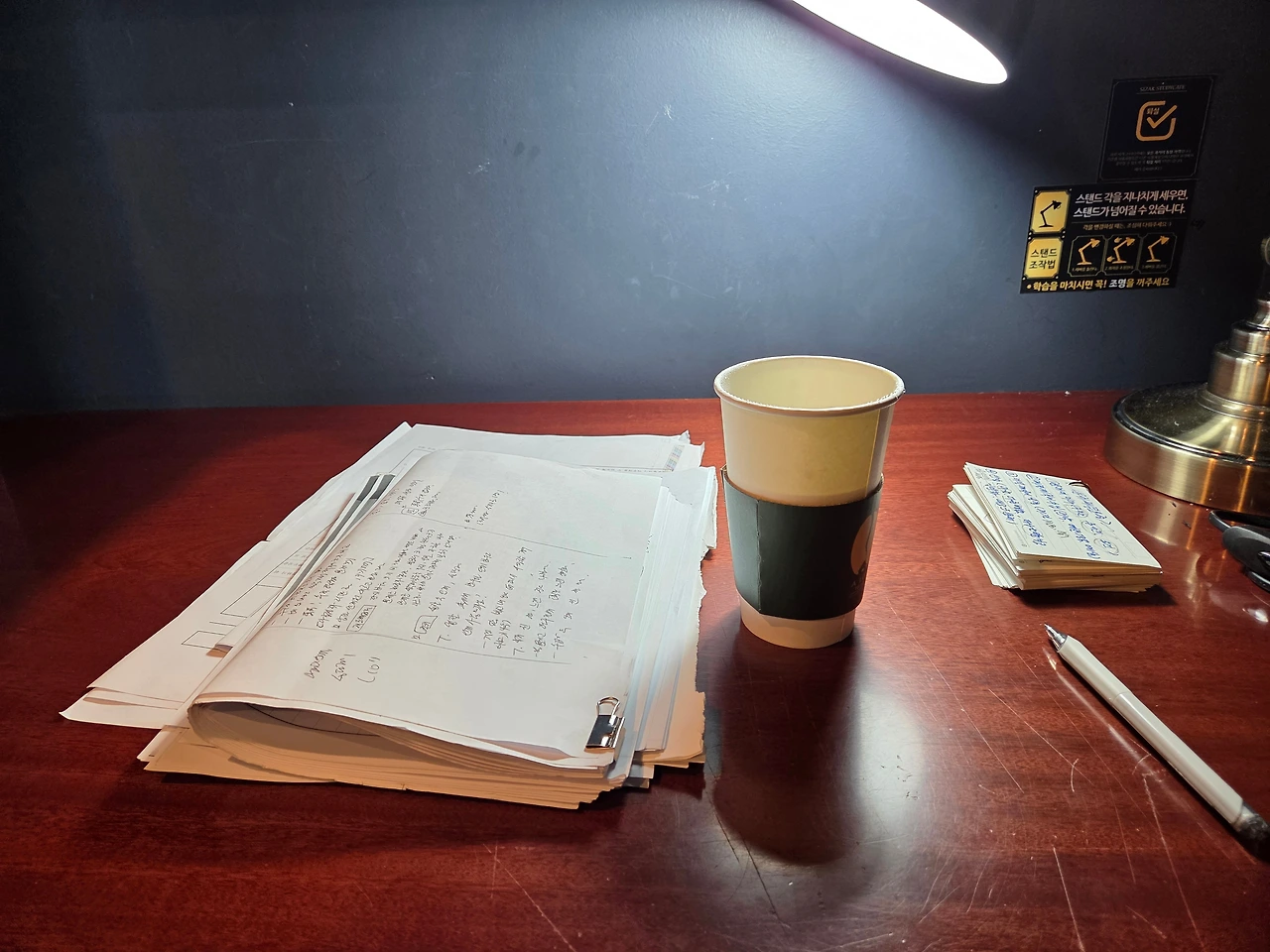 두툼하게 쌓인 종이 뭉치와 손때 묻은 메모장, 그리고 묵묵히 곁을 지키는 커피 한 잔. 그 고요한 풍경 속에서 치열하게 꿈을 향해 나아가는 당신의 숨결이 느껴져요.