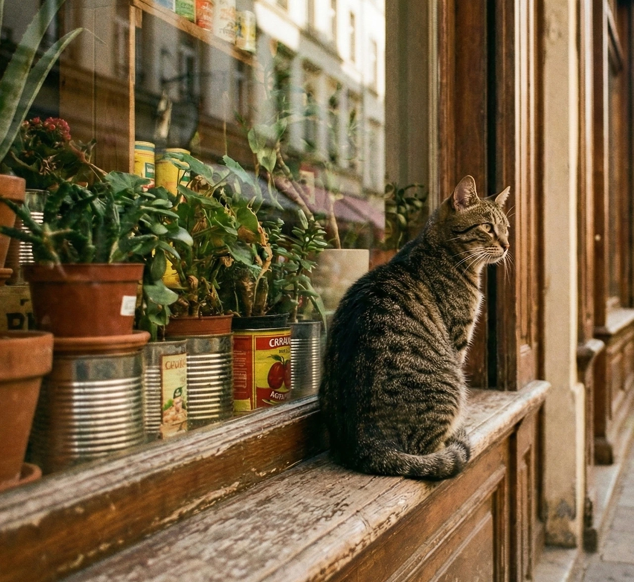 분주한 걸음으로는 결코 닿을 수 없는 풍경이 있죠. 빈 깡통조차 화분이 되는 이 다정한 창가처럼, 우리 마음에도 서두르지 않는 여유가 한 뼘쯤 자라났으면 해요.