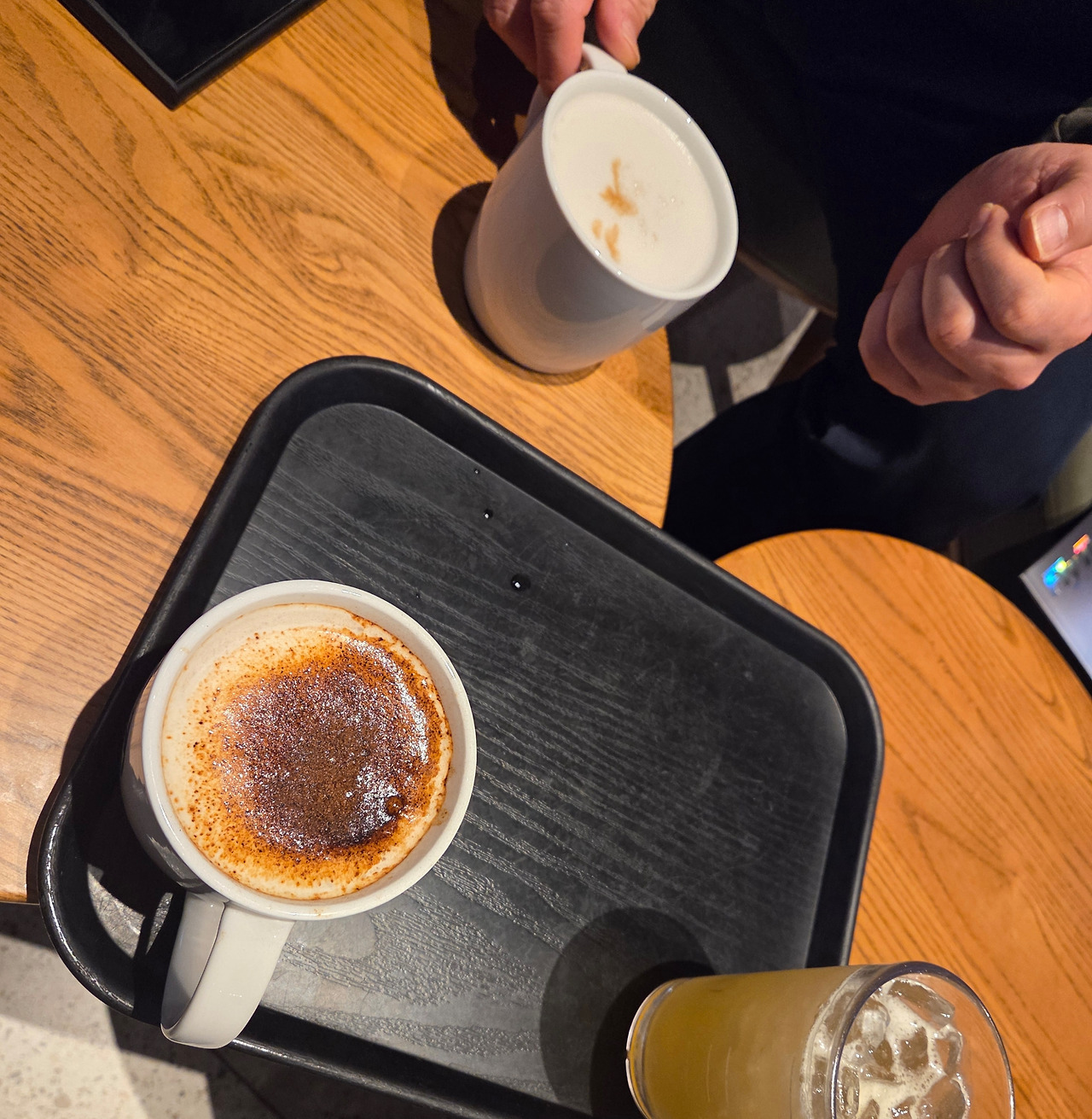 검은 트레이 안에 담긴 건 단순히 커피와 차가 아닙니다. 그건 우리가 세상 밖에서 움켜쥐고 있던 셈법을 잠시 내려놓겠다는 조용한 약속 같은 게 아닐까요. 뜨거운 것은 뜨거운 대로, 차가운 것은 차가운 대로 서로의 온도를 있는 그대로 껴안아주는 일.