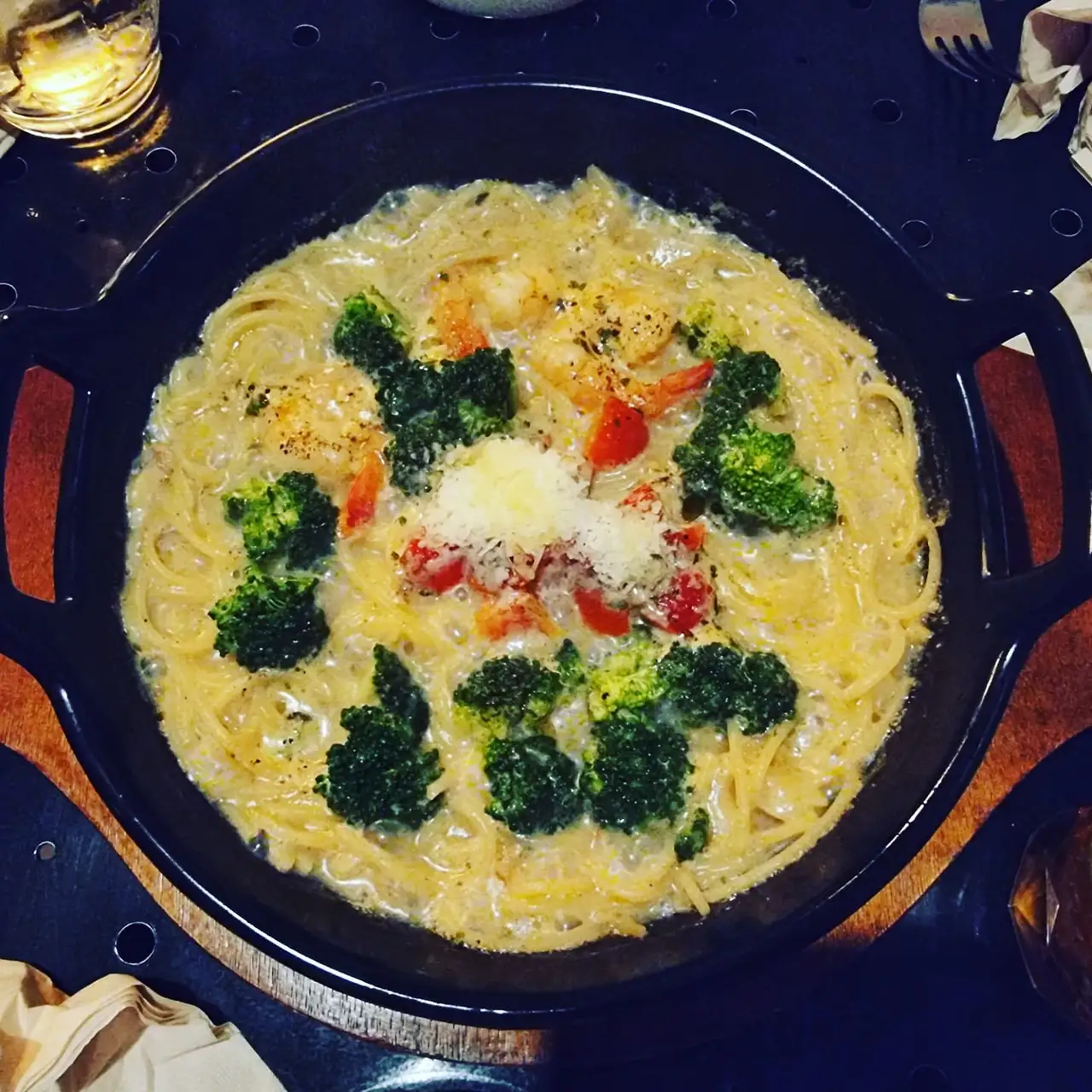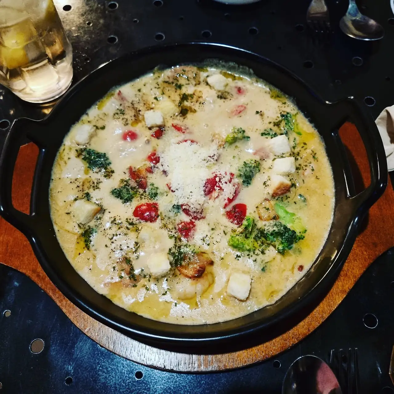 하루의 온갖 스트레스, 삶에서 느끼는 피로를 짊어진 채 3층까지 오른 이들을 위한 쉼터이기에 음식들이 푸짐하다. 아이보리 색의 크림소스에 나비 모양의 파스타인 파르팔레와 버섯, 브로콜리, 방울토마토, 크루통이 아낌없이 들어갔다. 그 사이로 오통통한 새우가 8마리. 치즈와 후추가 화룡점정이다. 보이는 것만이 아니라 맛조차도 아낌없다. 스트레스와 피로를 날릴 수 있게 자극적이면서도 변화무쌍한 맛이다. 분명 진한 크림소스인데 크림 때문에 느끼하지 않고 감칠맛이 넘친다. 후추는 톡 쏘고 지나가고 어딘가 매콤한 맛이 끝에 남아 입맛을 동하게 한다. 이 모든 맛이 정신없이 휘몰아쳐 음식에 집중하고 음식을 함께 먹는 사람도 함께 맛있게 먹으니 둘 만의 아늑한 파티다. 접시에 퍼주기도 하고 퍼준 걸 받기도 하며 서로 나누니 힘겹던 하루와 삶이 잊힌다.