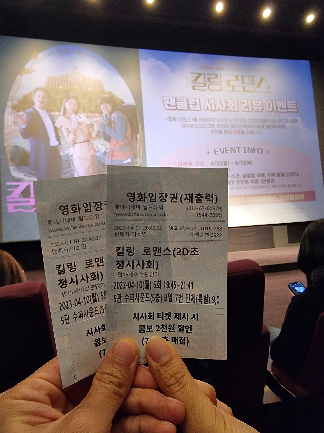 웨스 앤더슨만이 아니라 뮤지컬까지 들어갔다. 근데 너무 적재적소로 노래를 활용해 서사를 풀어서 오히려 한국 뮤지컬 영화를 향한 희망까지 느껴버렸다. 넘버라고 해봐야 3, 4개 정도이지만 넘버가 빠지면 서사가 진행이 안 된다. 그 정도로 <킬링 로맨스>는 노래와 찰싹 붙은 뮤지컬 영화이다. 영화 <영웅> 보다 더 연극적이면서도 뮤지컬스럽다. 심지어 아직도 황여래를 레드썬 상태로 몰고 간 조나단의 '행복'이 귓가를 맴돈다. 요즘 H.O.T와 NCT로 세대를 구분한다고 하는데 한 번 더 세대가 구분되어야 한다. H.O.T/NCT/조나단. 곧 조나단 세대가 등장할 것이다. 타조를 타고.