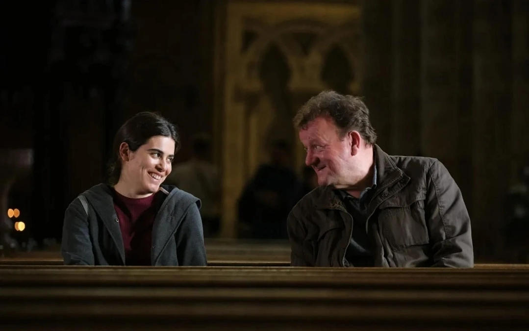 여기서 그치지 않고 <나의 올드 오크>는 야라의 부친의 사망을 추모하는 장례식이라는 마지막 지점을 통해 서사적 가능성을 실체화하려는 시도까지 하는 듯하다. 실체화 시도를 살펴보기 위해서는 두 번째 지점과 마지막 지점 사이에서 크게 2개의 사건을 살펴봐야 한다. 과거 농노들이 지었을 대성당에서 거룩한 카톨릭 성가를 들으며 야라는 내전 중인 시리아를 떠올린다. 거룩한 성가와 노동의 거룩한 결과물은 너무나 평화로워 매일 같이 수만 혹은 수십만의 사람이 고통 받고 있는 아비규환의 고국을 더욱 떠오르게 한다. 동시에 그런 자신의 고국을 외면하는 국제 사회에 대한 원망도 뒤따른다. 그럼에도 그 아비규환 속에서 아직 부친이 살아있다는 희망과 그러한 고국의 참상만이 아니라 따뜻하기도 할 세계의 모습을 부친에게 받은 사진기를 시작으로 담아낼 사진사가 될 것이라는 희망으로 야라는 내전 중인 고국을 떠올리며 차오르는 패배감과 좌절을 이겨낸다. 이러한 야라의 희망은 뒤이어 가톨릭 성가와 반대지만 똑같이 거룩한 무슬림의 노래가 퍼지는 펍의 공청회장에서 노동자들과 이민자들이 폐광촌에서 보내고 있지만 잊고 있던 따뜻한 일상을 담은 야라의 사진영상회에서 극대화된다. 야라의 흑백사진에서 노동자들과 이민자들은 영화에서 보지 못했던 미소와 함박웃음을 짓는다. 여기에 이민자들은 자신들의 손으로 노동자들의 사진에서는 흑백으로만 남은 용기-연대-저항의 참나무(Oak) 깃발을 만들어 노동자만이 아니라 스크린 너머 관객들에게 색이 있는 모습을 보인다. 마치 국제적 연대 공동체의 미래가 밝기만 할 것처럼 말이다.