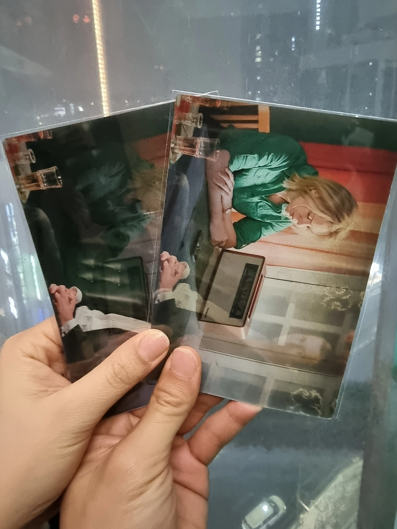 이러한 종말적 순간이 이어지는 <사랑은 낙엽을 타고>는 결말부에 가서 어떤 의미에서는 뮤지컬에서 벗어나 좀 더 현실적으로 혹은 뮤지컬에서 벗어나되 좀 더 서사적으로 끝을 맺는다. 영화의 결말부 서사는, 특히 결말은 굉장히 종말적이다. 순간이면서 영원인 종말은 끝이자 시작이다. 홀라파는 안사를 만나러 가는 도중 기차에 치여 혼수상태에 빠진다. 바로 직전 찾아가도 되냐고 전화한 홀라파와 지금 당장 오라고 답하고 길에서 구조한 개에게 청소를 하자고 한 안사의 상황과 비교해 들려온 여성의 비명 소리처럼 너무나 급격한 추락이다. 이러한 추락으로 병원에서 두 사람의 모습은 홀라파가 결국 깨어날 것이라고 생각해도 그렇지 않을지도 모른다는 긴장감으로 계속해서 종말적인 분위기를 유지한다. 이러한 종말적 분위기를 고조시키는 듯 안사는 병원을 찾아가 그런 홀라파가 깨어나길 기다리며 옆에서 말을 건다. 이 때 처음에는 잡지를 읽어주려던 안사는 고학력자의 식인 사건이라는 끔찍한 사건이 적힌 잡지를 읽다 그만두고 핀란드 축구 대표팀이 월드컵에서 우승할 것이라는, 일어났으면 좋을 이야기를 지어낸다. 슬픔과 환멸로 가득한 현실에서 희망을 피어오르게 할 스포츠 소식은 홀라파가 어서 일어나길 바라는 감정과 의지이면서도 스크린 너머 바깥에서 보기에 러-우 전쟁으로 연결된 스크린 안밖의 현실 둘 다에서 불가능한 사건이기에 안타까운 한숨과 웃음을 준다. 아직도 자고 있는 거예요? 사랑하는 여자가 울고 있다고요.