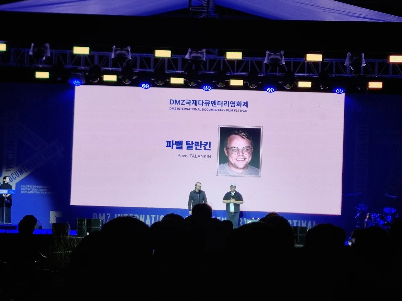 올해로 17회를 맞이한 DMZ국제다큐멘터리영화제(DMZ International Documentary Film Festival, DMZ IDFF)는 이름만 귀동냥으로 들었을 뿐 실제로 영화제에 와 영화를 본 것은 올해가 처음이다. 심지어 처음부터 개막식에 개막작 상영까지 보게 될 것이라고는 생각도 해본 적이 없다. 개막식은 파주시 임진각 평화누리공원에서, 본격적인 영화제는 고양시와 파주시를 중심으로 진행되고 영화도 다큐멘터리 장르로 평소 많이 접해보지 못해 어렵게 느껴지다 보니 더욱 멀게만 느껴진 영화제라 영화를 보러 버스에 올라탈 때면 조금 얼떨떨하고 어색하게 느껴진다. 개막식을 보러 평화누리공원까지 갔을 때도 '와, 넓다'하면서도 '집에 갈 때 미아가 되지 않을까?'하는 상상까지도 했으니 고양시로 가는 버스에서의 감정은 별거 아닐지도 모르겠다. 다만, 그래서 그런지 '우리가 살고 싶은 하루'라는 슬로건을 내건, 이번 제17회 DMZ IDFF는 준비되지 않았기에 더 크게 와닿는 영화제로 기억될 듯하다. 그 첫 시작인 개막작 <푸틴에 반대하는 모든 사람(Mr. Nobody Against Putin)>은 살고 싶은 하루를 살 수 없는 이들의 바람을 유쾌함과 절망감이라는 상반된 감정의 역동성으로 그려낸 영화로 기억할 듯하다.