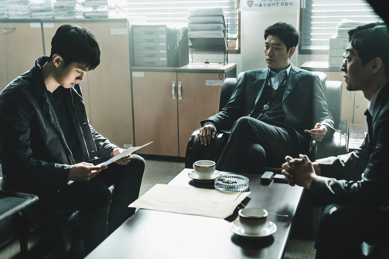 하지만 <경관의 피>는 서사 전개에서 최민재와 박강윤 사이를 최민재의 아버지로 연결하면서 최민재가 박강윤에게 감화되도록 한다. 최민재의 아버지는 연남회 소속으로 자신의 경찰 정체성이 흔들리면서 아들에게 경찰이 되지 말라 말했으며 심지어 범죄자에 의해 목숨을 잃기까지 한다. 반대로 최민재의 아버지는 마약 중독자인 박강윤의 아버지가 죽자 박강윤을 위해 장례식에 홀로 찾아갔을 뿐만 아니라 박강윤이 경찰의 꿈을 가지고 경찰로서 온전하게 활동할 수 있게 도와준 존재이다. 이에 따라 최민재의 아버지는 아들 최민재에게 이해할 수 없으면서도 영원히 인정을 받을 수 없어 욕망의 대상이 되고 박강윤은 최민재의 욕망을 해결해줄 수 있는 유일한 존재가 된다. 연남회 소속인 아버지가 스폰을 받는 경찰, 때로는 범죄 조직을 비호하는 경찰 등으로 인해 경찰 정체성을 흔들린 것과 달리 자신의 아버지와 마찬가지로 연남회 소속인 박강윤은 아버지와 달리 경찰 정체성을 흔들리지도 않고 끝까지 경찰의 책무를 다하기 때문이다. 즉, 박강윤과 최민재 사이에는 절대적인 상하 관계가 이미 서사적으로 형성되어 있는 것이다.