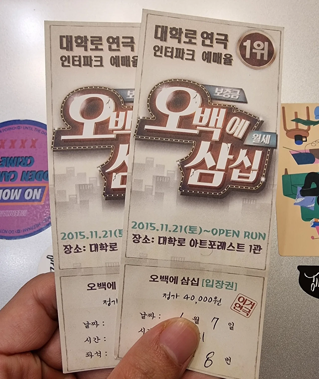 "도쿄를 팔면 미국을 살 수 있다." 한창 파죽지세로 세계 경제를 주름잡던 7, 80년대 일본을 가장 잘 표현한 말이 아닌가 싶다. 하지만 반대로 땅과 집이 천정부지로 치솟아 개인이 일을 해 번 돈으로 땅과 집을 사는 것이 불가능한 시기이기도 하다. 그 때와 비슷하게 현대의 한국도 내 집 마련이 불가능하다. 내 집 마련이 불가능할 뿐만 아니라 잠깐 사는 집조차도 전세든 월세든 매년 가격이 올라 구하는 것이 더 불가능해지고 있다. 소득 상승에 비해 물가 상승으로 소비 상승이 더 높은 현대 한국은 집까지 구하기 어려우니 인간이 살기 위해 기본적으로 갖춰져야 하는 식의주를 모두 구하기 힘든 시대임에 틀림없다. 삶을 유지하는 것이 어렵다 보니 단순한 식의주만이 아니라 어려운 순간에 의지할 수 있는 이웃 혹은 친구마저도 온전히 믿기 어려운 사회가 되기까지 했다. 대학로 연극 <오백에 삼십>이 단순히 웃음을 주는, 흔한 대학로 코미디극임을 넘어 코미디극 특유의 단순하면서도 직설적인 눈으로 인해 씁쓸하기까지 한 연극인 이유이다.