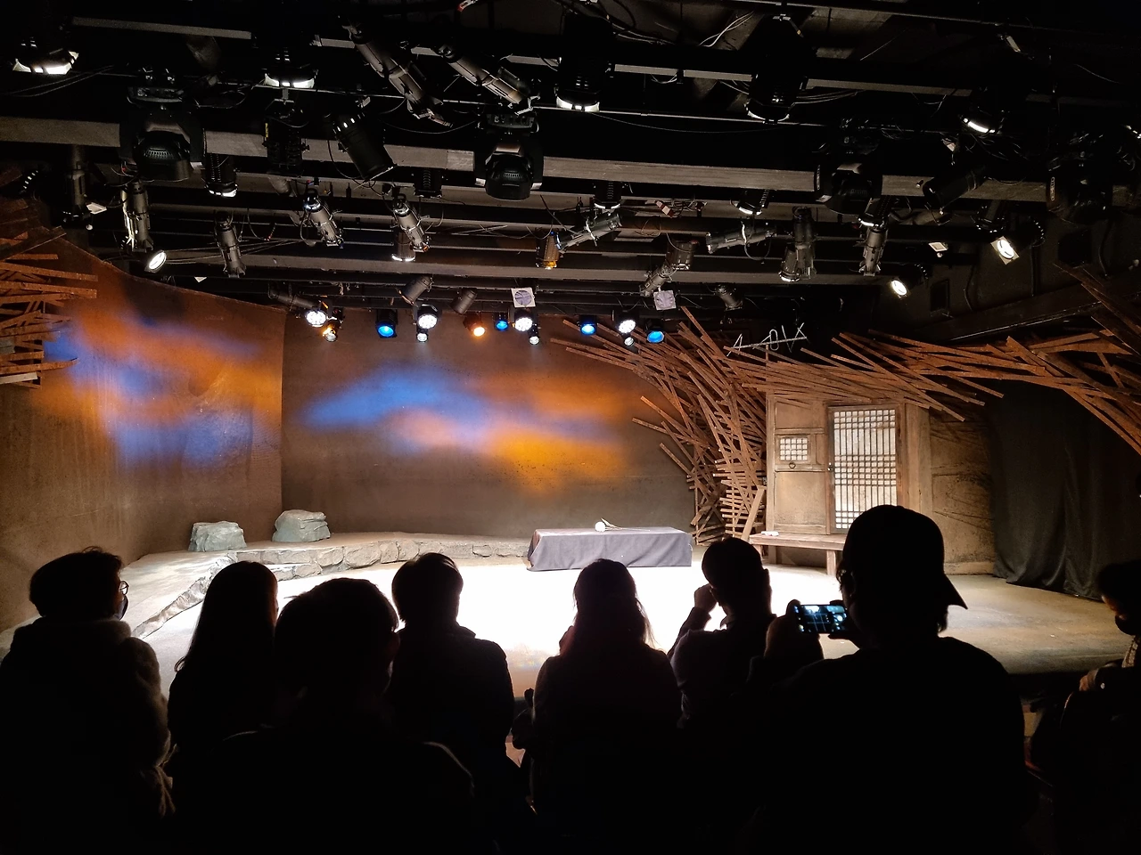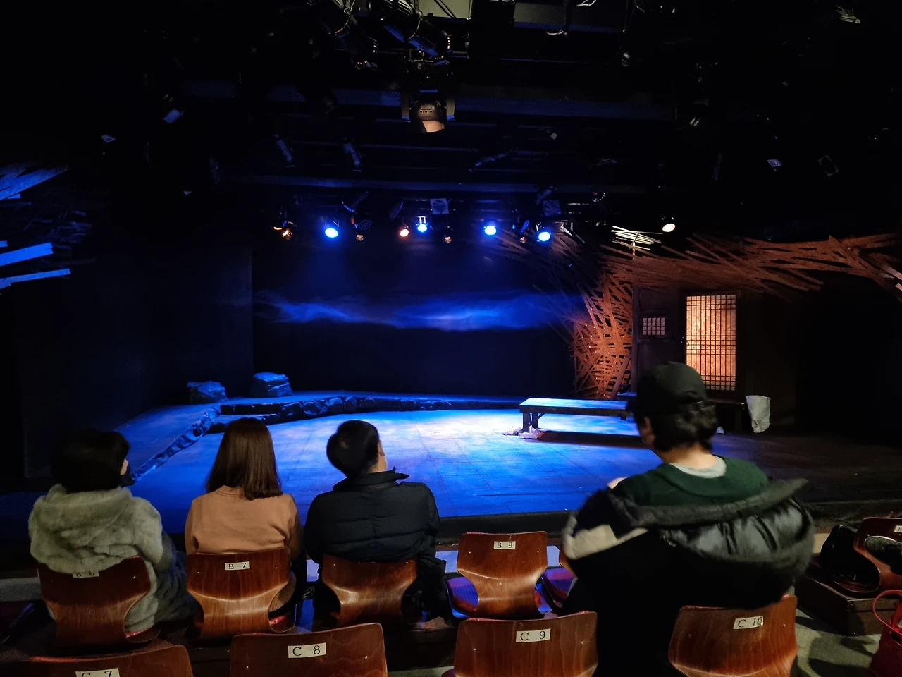 우창-황가의 마을 서사와 제임스 리의 귀국 서사로 2개의 서사 라인으로 진행되는 연극 <금의환향>은 위에서 언급한 과거에서 벗어나 충실히 현재를 살자와 성공한 사람의 떡고물을 탐하는 인간 세태에 대한 비판이라는 두 주제가 함께 진행된다. 하지만 이 두 주제가 어떤 하나의 주제로 수렴하는 것이 아니라 따로 진행되고 따로 끝난다는 점에서 <금의환향>은 고향으로 돌아오는 길이 갈팡질팡하는 것으로 보인다. <금의환향>이 갈팡질팡하는 것으로 보이는 이유는 장면 전환이 어색하다는 것과 강조하고자 하는 주제가 애매하다는 것으로 크게 2가지라 할 수 있다. 우선 전자의 경우, 우창-황가의 마을 서사와 제임스 리의 귀국 서사가 유기적으로 연결되지 않는다는 점에서 확인할 수 있다. 2개의 서사 라인을 연결하는 방식으로 <금의환향>은 우창-황가의 마을 서사와 관련된 장면이 끝이나면 암전을 활용해 제임스 리의 귀국 서사로 넘어간다. 이 때 관객은 우창-황가의 마을 서사에서 우창과 황가 두 노인의 우정에 울고 웃으며 감정을 이입하는데 암전으로 인해 이입하고 있던 감정을 미처 소화하기 전에 암전으로 인해 새로운 장면을 맞이하게 된다. 감정이 휘발되어 버리는 것이다.