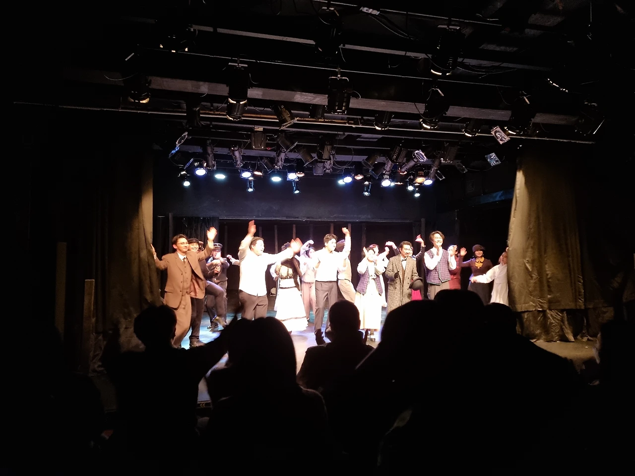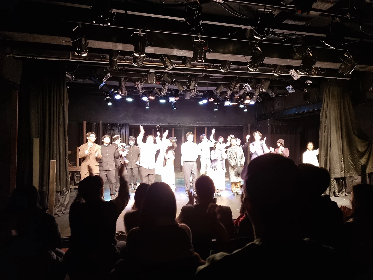 <여우만담>. 아니 정확하게는 <여배우만담>이다. 일제강점기부터 해방 직후까지 당대 여배우들의 삶을 조명하고자 했다고 안내 책자에는 적혀 있다. 문제는 연극에서 여배우의 삶을 조명하는 것으로 느껴지지도 않으며 대체 왜 여배우의 삶을 조명하려고 하는지 즉, 여배우의 삶을 조명하는 것으로 무슨 말을 하고 싶은 건지 알 수가 없다는 것이다. 이 연극에서 가장 명확한 것은 연극의 시대 배경이 일제강점기에서 한국전쟁 직후 즉, 1930년대에서 1950년대 즈음이라는 형식 뿐이다. 무대를 채우는 의상, 소품, 음악은 1930년대에서 1950년대 사이의 한국을 잘 그리고 있다. 하지만 그 뿐이다. <여우만담>은 일제강점기의 동방극단이라는 극단에서 벌어지는 사건을 편집없이 그냥 찍고 있는 카메라 같은 시선으로 서사를 전개한다. 편집없이 그냥 찍고 있는 카메라라고 해도 전달하고자 하는 의도 즉, 주제가 있다. 하지만 <여우만담>은 그저 찍고 있는 카메라 같은 시선으로 일제강점기의 어느 한 극단을 재현만 할 뿐 재현의 의도를 파악하기가 어렵다. 관객이 어떻게 반응해야 할지 몰라 지루한 공연으로 느껴지는 것이다. 이러한 데에는 주제와 인물이 어떤 관계가 있는지 파악하기 어렵다는 점과 주제와 관련해서 장면이 불필요하다고 느껴진다는 점을 이유로 들 수 있을 듯하다.