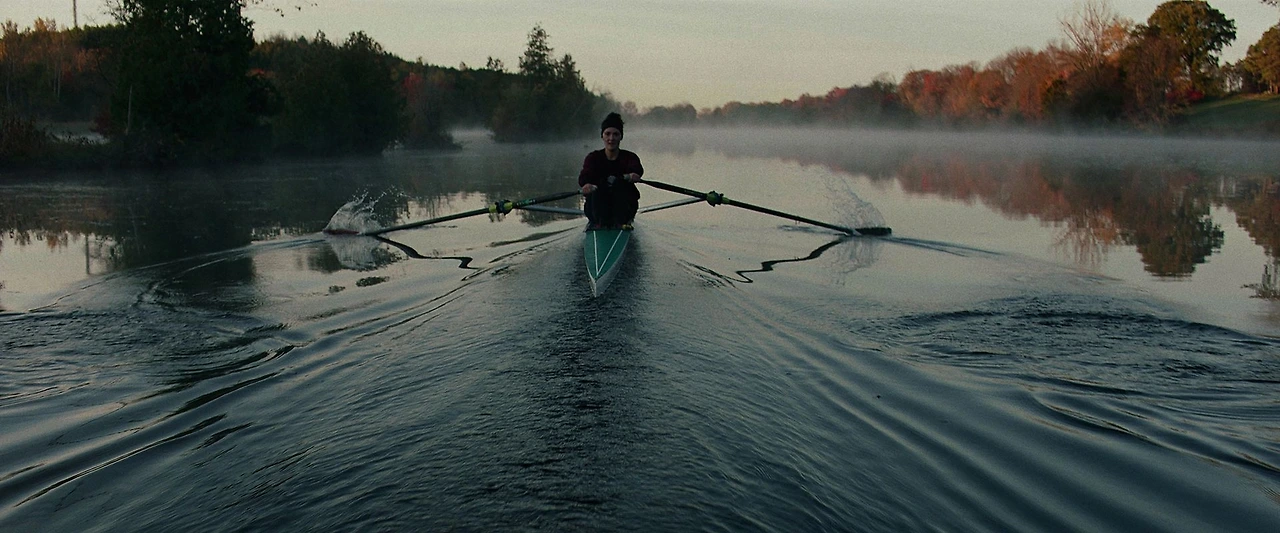 하지만 두 영화 모두 있어 보이는 연출을 할 뿐 실질적으로는 무의미하게 느껴진다. <더 노비스>를 보자. 완벽주의를 향한 알렉스의 광기는 현실에서도 있을 수 있다. 이미 <더 노비스>와 비슷하게 <위플래쉬>라는 영화가 있었듯이 누군가는 알렉스만큼이나 완벽주의를 추구하고 있으며 완벽주의를 향한 광기는 어떤 측면에서 아름다워 보일 수 있다. 하지만 <위플래쉬>와 달리 <더 노비스>는 완벽주의를 향한 광기를 아름답게 그리지 못했다. <위플래쉬>의 앤드류는 최고의 재즈 드러머가 되고 싶다는 목표가 있었으며 그 목표를 달성하는 과정에서 플레처 교수를 만나면서 완벽주의로 드러선다. 반면 <더 노비스>의 알렉스는 목표가 불분명하다. 알렉스가 학점을 잘 받으려고 미친듯이 공부하고 조정에서 예비 선수인 노비스가 아닌 프로가 되기 위해서 미친듯이 조정 연습을 하는 이유는 명확하지 않다. 말 그대로 어제보다 오늘 더 낫고 오늘보다 내일 더 나아지는 것으로서 완벽 그 자체가 목표로 제시될 뿐이다. 하지만 이러한 완벽이 무엇인지는 받아들이는 사람마다 다르다는 점에서 명확하지 않다.