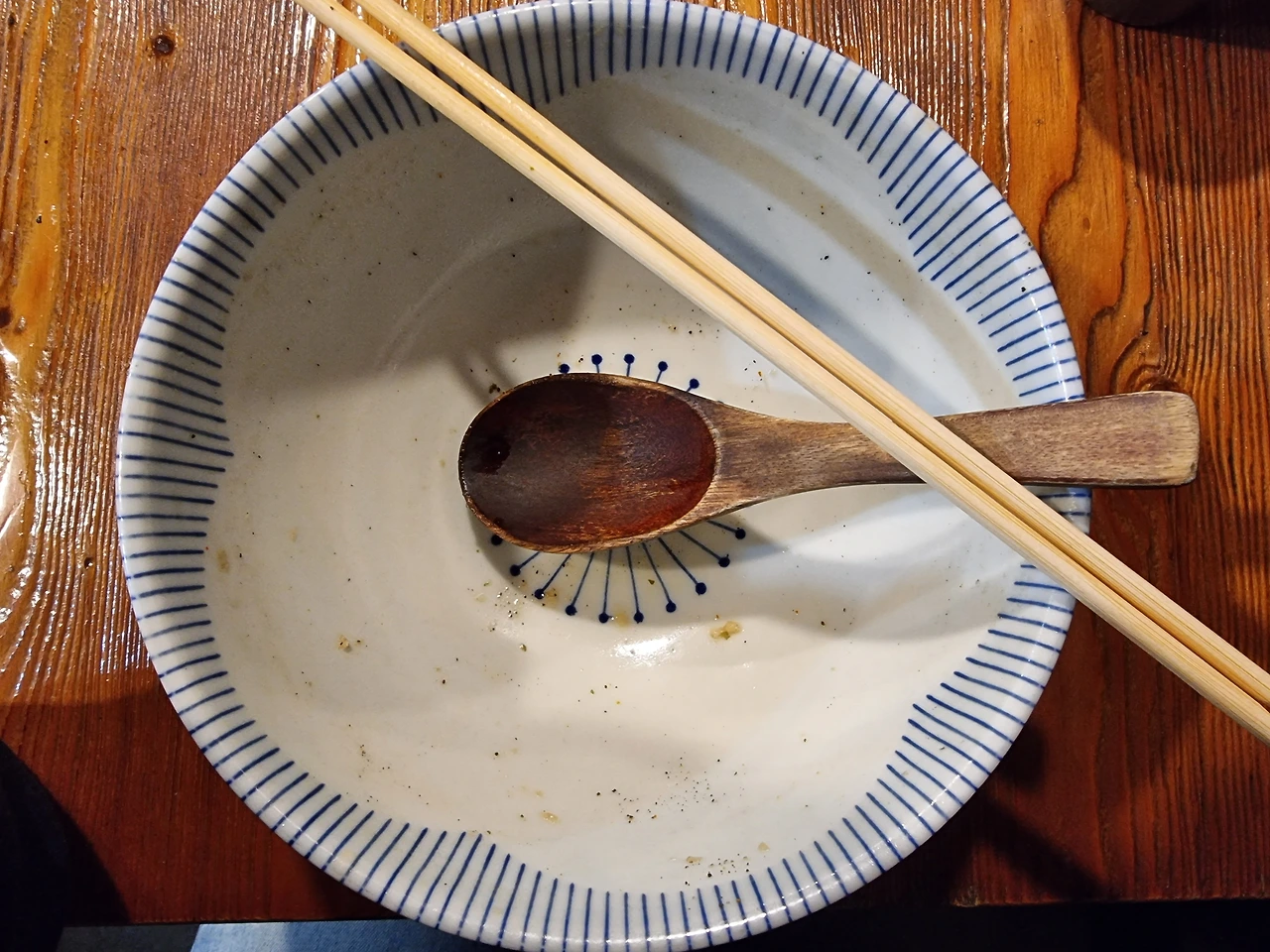 19년 때와 마찬가지로 육수는 여전히 파향과 불향이 가득하다. 달달하고 진한 파향 사이로 불향이 함께 올라와 입맛을 돋운다. 면도 미리 곱빼기로 주문해서 양도 충분하다. 19년에는 면을 다 먹고 추가했나 보다. 바보 같으니... 그런 건 미리 주문했어야지 과거의 ‘나’. 가을의 차고 쓸쓸한 기운은 파와 불로 데워져 몸이 덥게 느껴진다. 거대한 새우튀김은 육수를 머금으면서 반은 후두둑 떨어지고 반은 바삭하게 붙어있다. 튀김옷 안 탱글한 새우살이 잇몸에 자신의 탱글함을 남긴다. 곱빼기로 주문한 우동 면을 튀김에 한 번, 육수에 한 번, 부들부들하면서 쫀쫀한 식감을 뽐내는 유부에 한 번. 곱빼기가 다 무슨 소용인가? 육수를 제외하면 남은 면이 없어 남은 육수를 한 번에 털어 넣는다. 그릇은 바닥을 보일수록 항상 옳다.