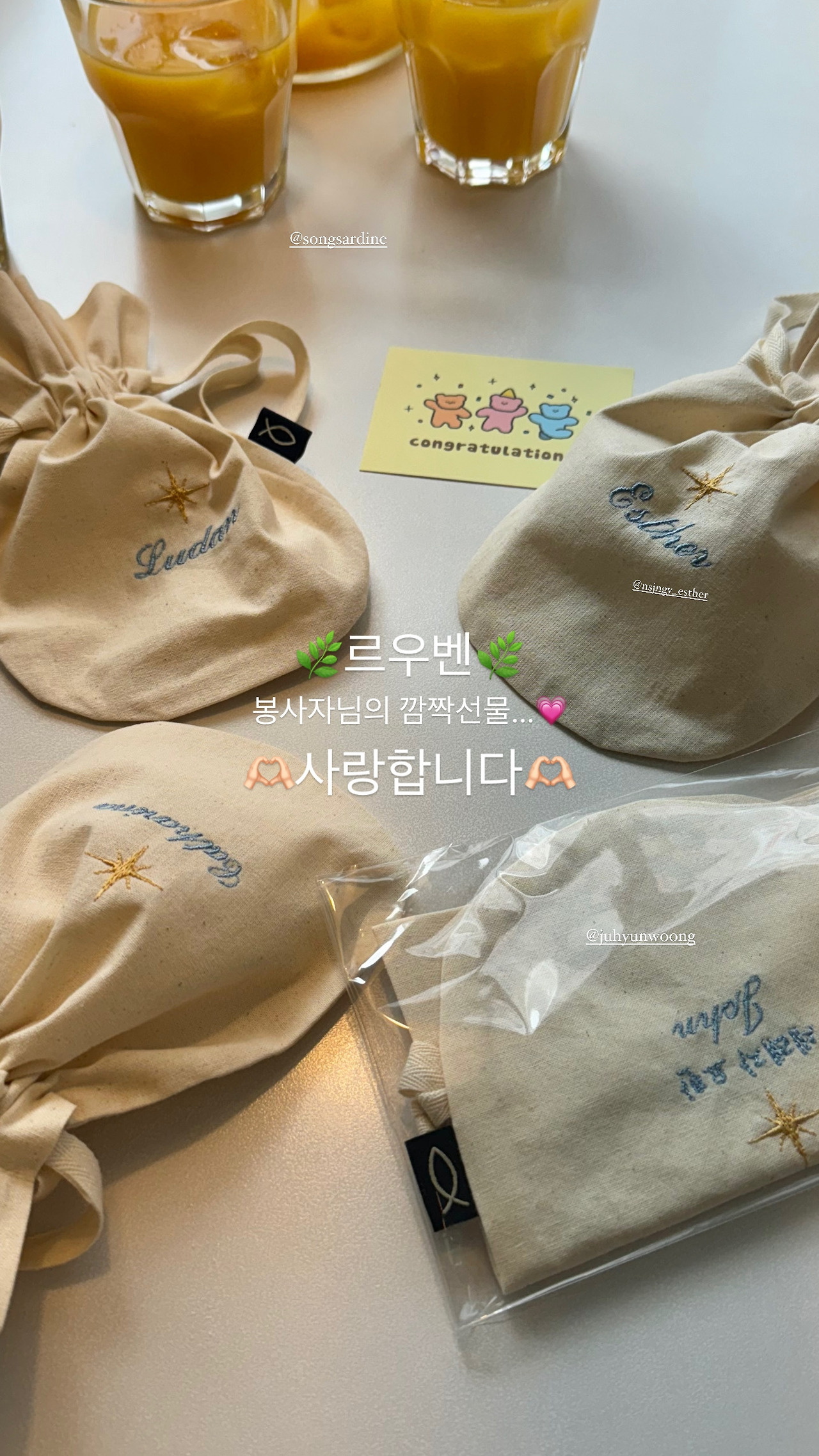 아 자매님으로부터 받은 선물. 사진 출처 = 카 자매님저와 동갑으로 피정 때부터 꼭 붙어 지냈던 루 형제님은 이번만큼은 돋보인 활약상을 펴 줬습니다. 바로 전 2차 모임에선 출장 피로감 탓에 '알콜 장벽'을 못 넘어 중도 하차했던 터였습니다.