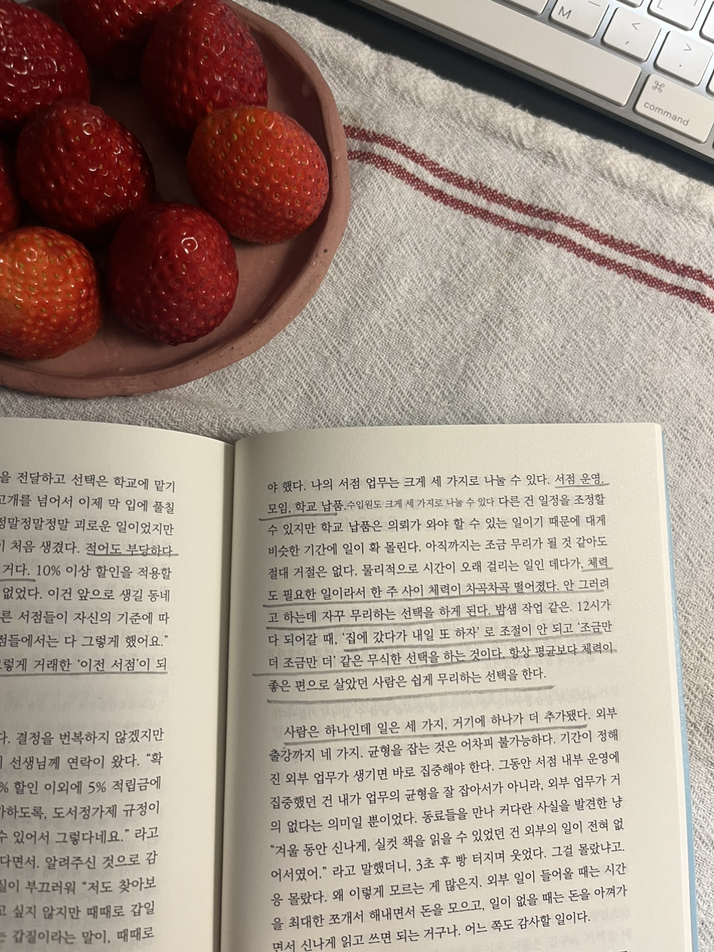 -새로운 프로젝트를 동시에 많이 시작했다. 출판과 인풋/아웃풋클럽, 위잇북클럽 브랜딩과 오프라인 확장, 호비클럽 북토크까지. 출근 전과 퇴근 후에 동시에 여러가지 프로젝트를 하다보니 뇌가 쉴 시간이 없었다. 그냥 정말 아무 생각없이 쉴 시간이 절대적으로 부족했고, 수면시간도 줄었다. 점심에 운동하거나 플젝을 하다보니 뭔가 식사도 부실해지고, 가만히 햇볕쬐며 커피마시는 시간도 줄었다. 새로운게 들어서면 나의 루틴이 깨지다보니 자연스레 부실해지는 부분이 생긴다. 적당한 새로움을 추구할 것.