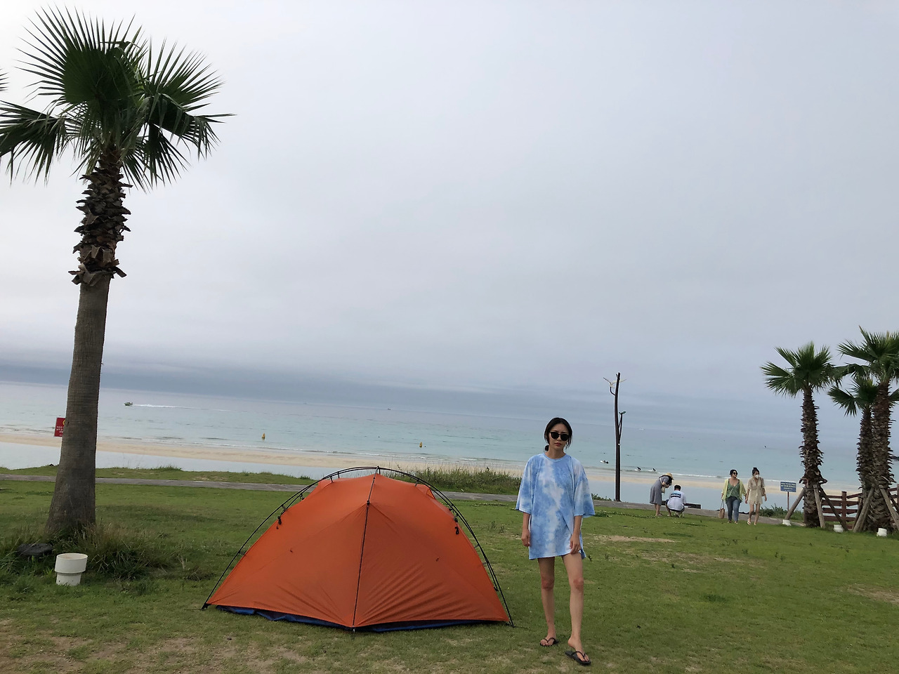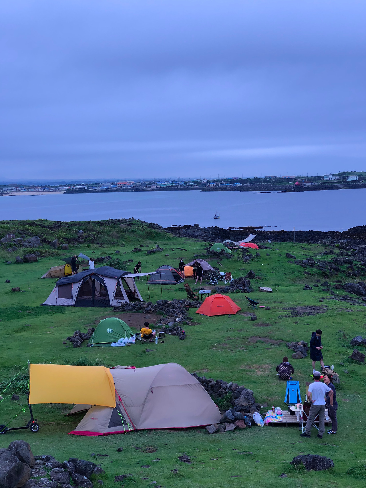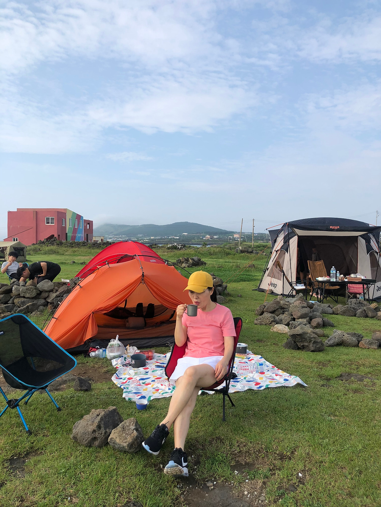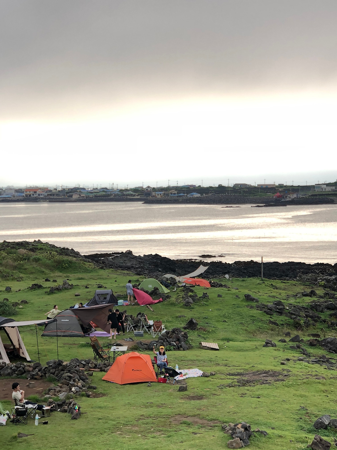 둘 째날은 작년에 실패했던 군산오름에 오르는게 목표였는데, 엄마는 나를 보호해야한다는 걱정에 안전한 선택을 하기로 했다. 조금은 아쉽더라도 안전하게 함덕해수욕장 야영장에 자리를 잡기로 했다. 사실 위치는 어디든 상관없다. 우리가 함께하는게 중요하지.