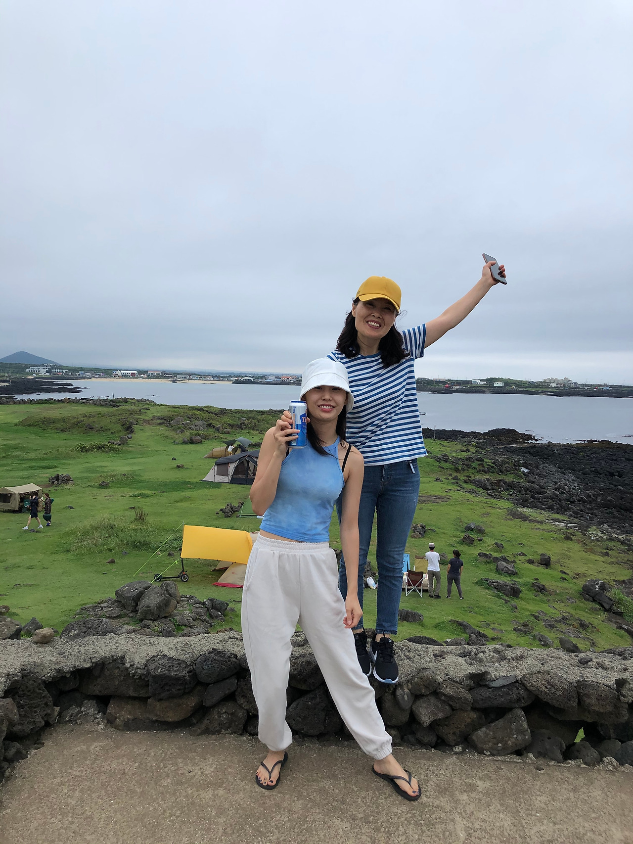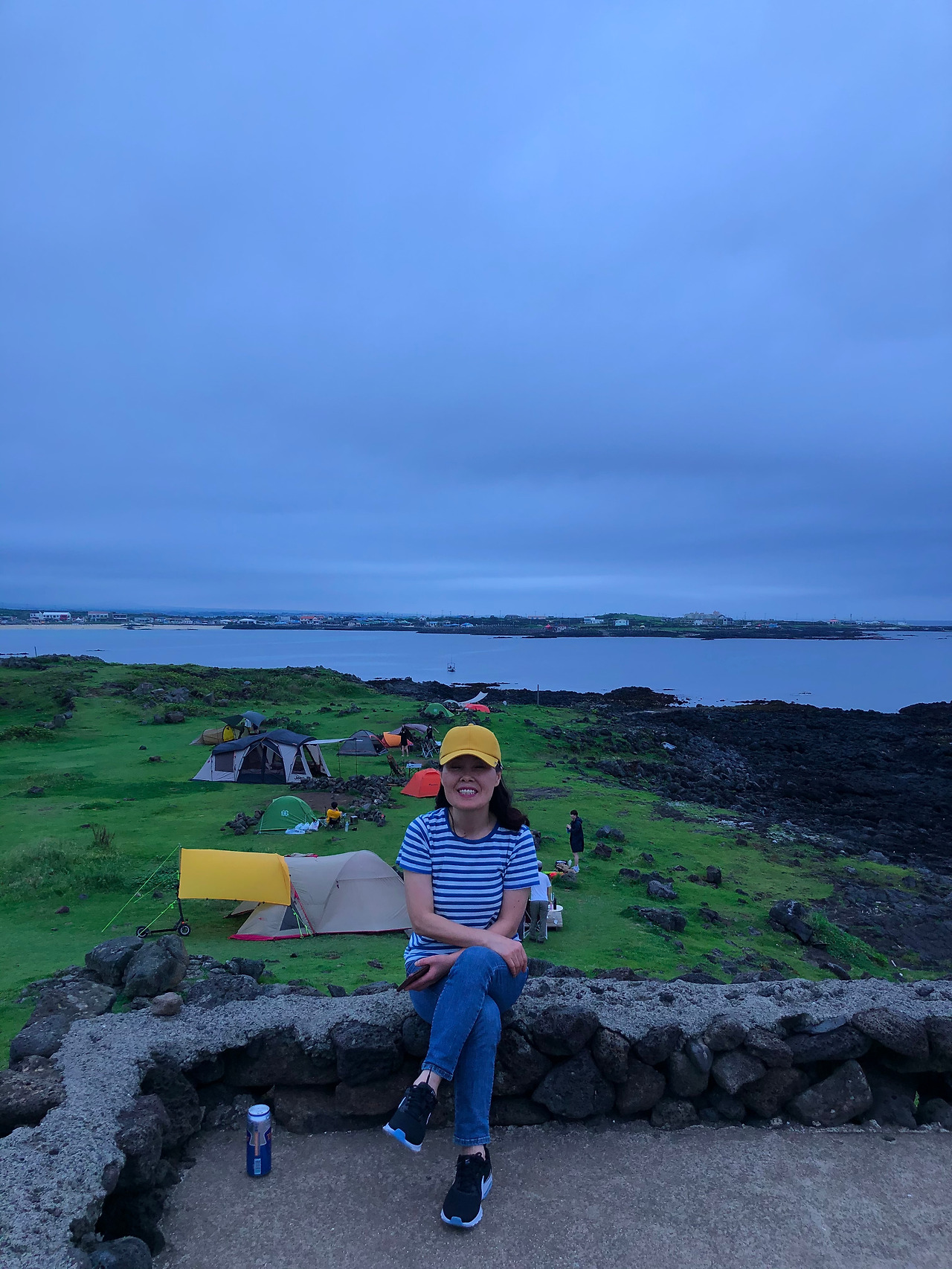 늘 이렇다. 제주의 날씨란. 성산항까지는 흐렸던 날이 우도에 내려 비양도에 다다르면 점차 맑아진다. 평일인데도 사람이 많다. 작년에 우리를 반겨줬던 노부부도 생각이 난다. 1년 만에 다시 와서 너-무 행복하다고 활짝 웃는 엄마를 보니 다사다난했던 오전이 모두 잊혀지는 것 같았다. 엄마의 행복이 곧 나의 행복이다. 이젠 우리 둘이 텐트를 뚝딱 치고, 삼겹살도 야무지게 구워먹는다. 술 한잔하고, 차도 한 잔 하고, 산책도 하고.