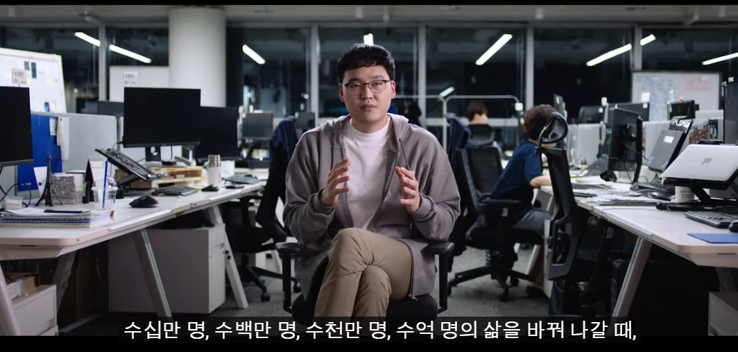 그게 엄청난 혁신이 된다고 보거든요. 그래서 저희는 작은 삶의 변화라고 하더라도 대힌민국 국민 전체의 삶을 바꾸는 데 집중하고 있어요. 그 작은 변화들이 모두 모여서 결국에는 엄청난 시대의 변화를 만들어 내니까요. "