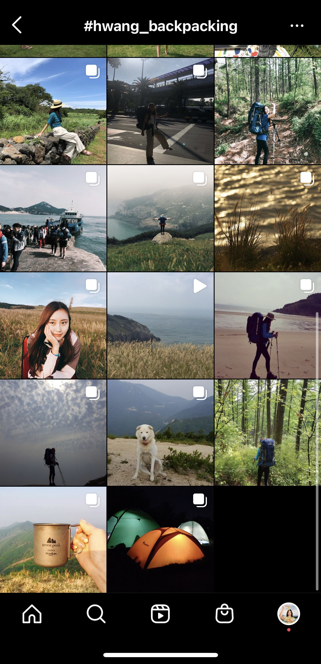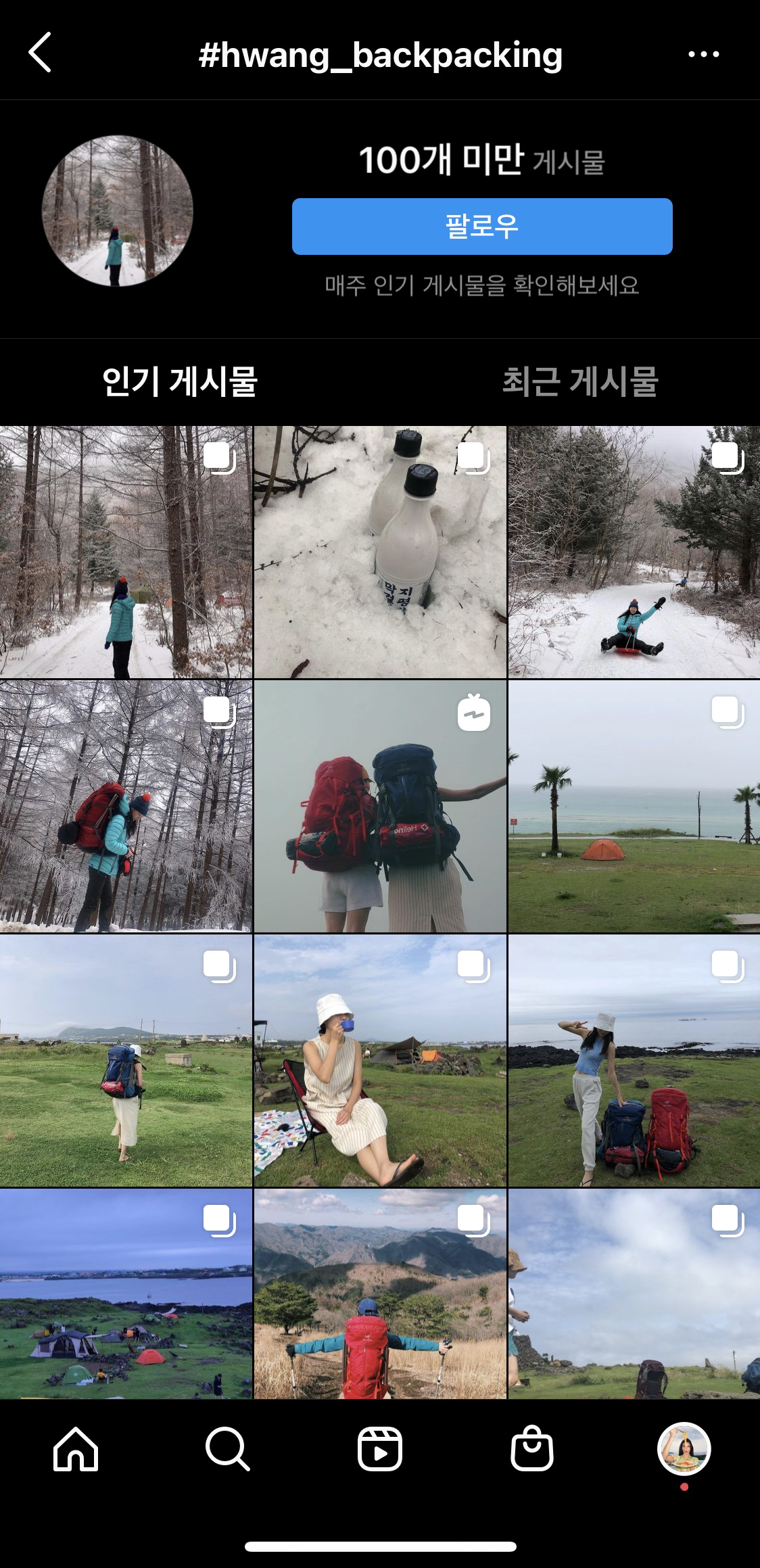 #hwang_backpacking이라는 태그로 엄마와의 백패킹을 기록하고 있다.