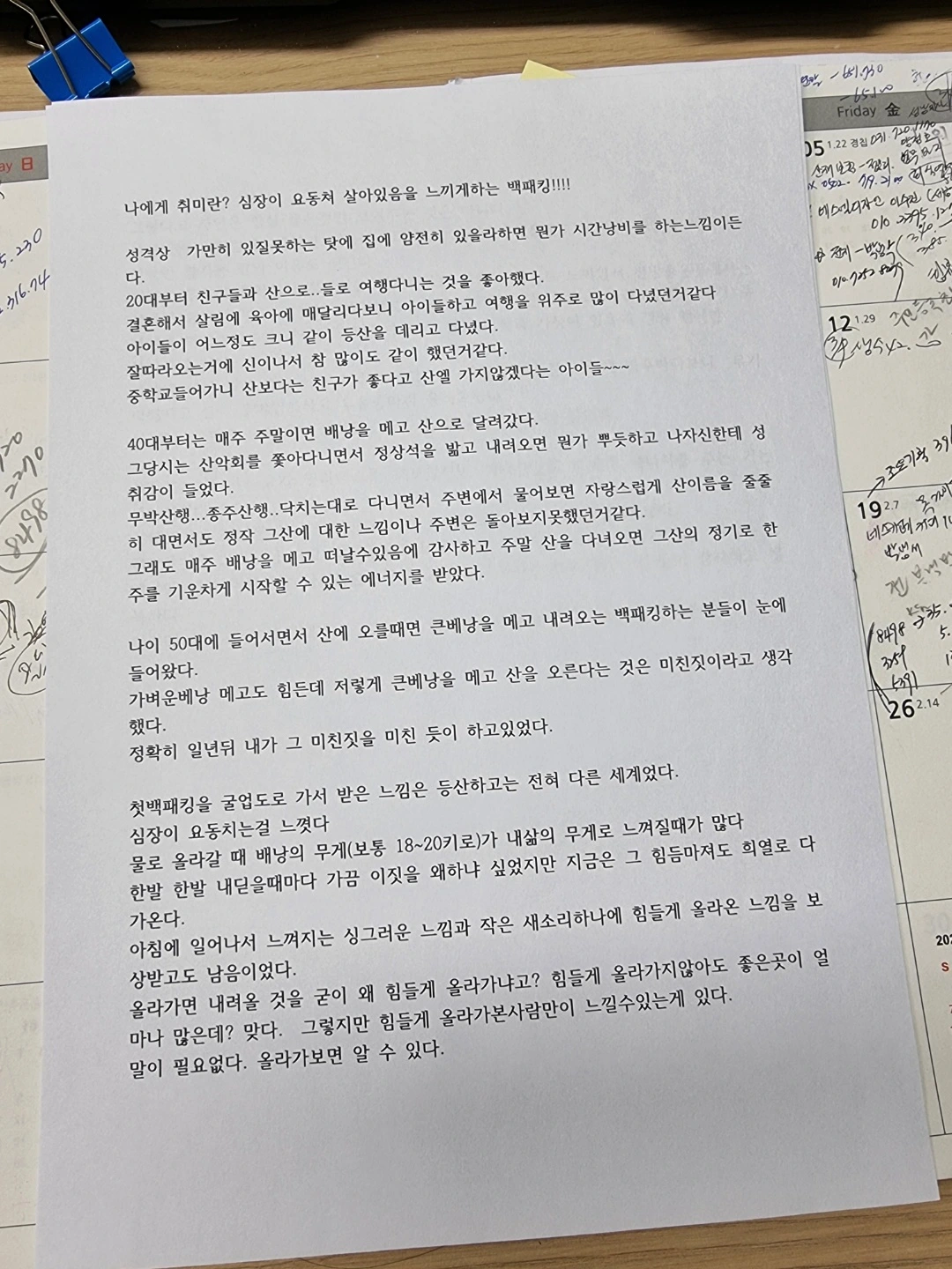 나이 50대에 들어서면서 산에 오를 때면 큰 배낭을 메고 내려오는 백 패킹하는 분들이 눈에 들어왔다.