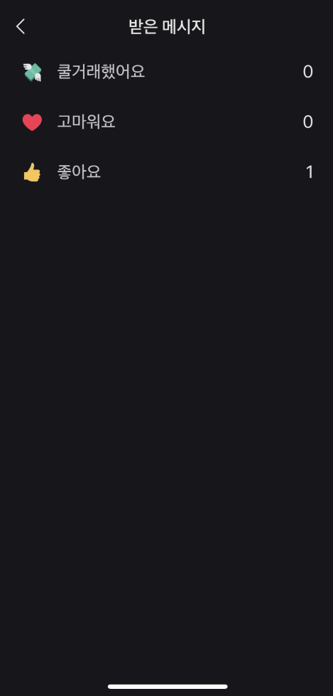 토스아이디 '받은 메시지'함에 들어가면 쿨거래했어요, 고마워요, 좋아요 라는 리액션 개수가 나온다. 예전에는 당근도 있었는데 변경된 것 같다.