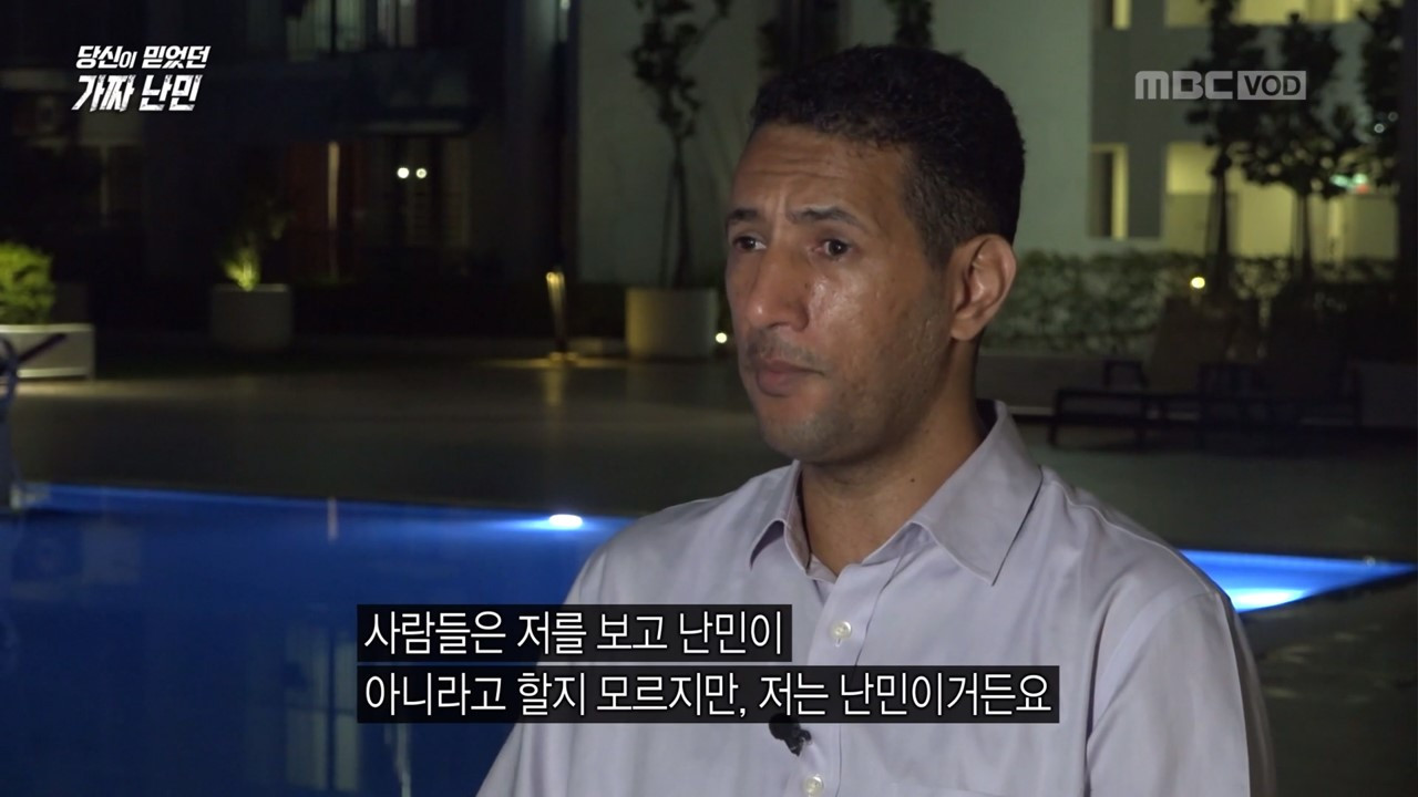 -궁핍하지 않은 삶을 살면서도 난민이라고 주장하는 남성 난민.