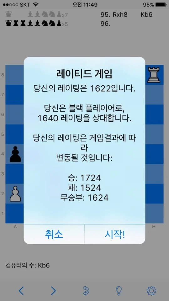 최근 내 아이패드의 거금 40여불 짜리 체스(서양장기) 앱이 갑자기 나를 높이 평가하기 시작했다. 이 어플은 꽤나 수준 높은 인공지능 어플로서 체스 레이팅 2,500점까지 가능하다. 2,500점이면 인간계 매스터급이상으로 국가 챔피언급인데, 이 인공지능은 나를 평소 900-1,000점의 하수로 평가해왔다. 그런데 이번 항공 여행 중에 새로운 공격루트를 개발하여, 성공시켰더니 갑자기 나를 1,600점대의 중수로 보기 시작하였다.