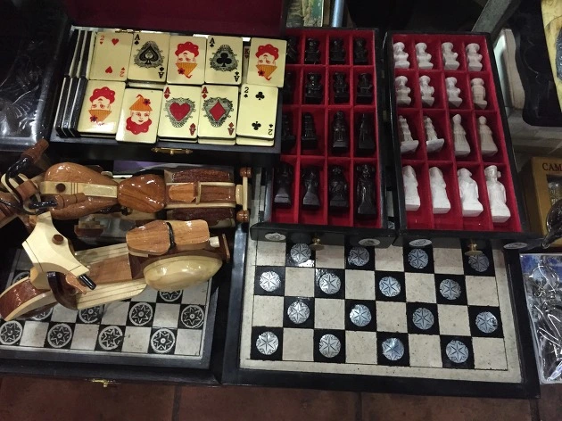 그 가게에는 다음과 같은 체스를 팔고 있었다. 이것은 서양체스이지만, 중국인의 복식을 한 체스이었다. 캄보디아의 체스를 원한다고 하니까, 가져다 주었는데, 아쉽게도 판은 없었다.