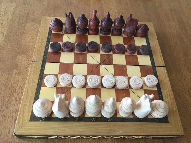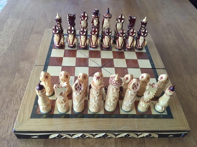 1) 이것은 한국에서 아이들과 함께 두던 체스판이다. 아마 2006년경 한국 마트에서 산 것이다. 자기력이 있어, 사용하기에 편한 체스판이다.