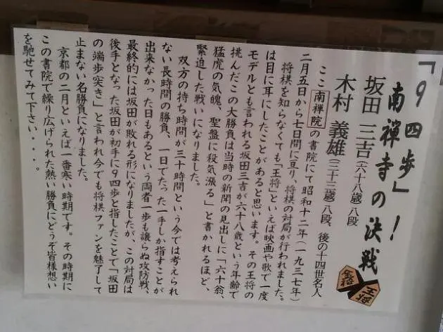 2) 세째날 남선사에서 만난 벽보입니다. '남선사의 결전'이라는 유명한 쇼기의 승부가 1937년에 두어졌다고 합니다.