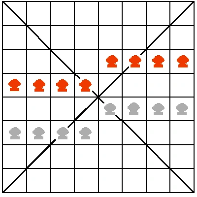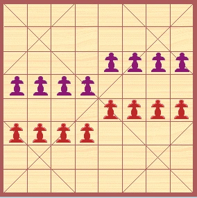 중국 사이트를 검색하다가 중국인이 그린 미얀마 장기 포진도(A)를 보게 되었다. 그리고 특이한 점을 발견하게 되었다. 그것은 양진영의 포진이 정확히 대칭되어 있다는 것이었다.