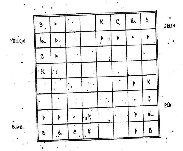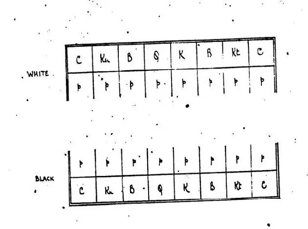상과 배 즉 성채와 비숍은 기물이 바뀌었다. 아마 상은 그의 등에 얹은 가마로 인해 성채가 되었을 것이다.