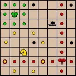 라자는 체스의 킹과 똑같이 움직이는데, 어느 방향으로든 한 칸이다.