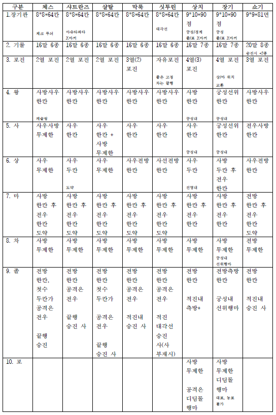 1. 모든 체스(장기)의 공통요소를 보면