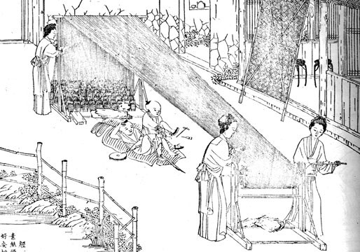 비단 생산 지역인 중국 곳곳에서 수백 년에 걸쳐 어머니와 딸, 손녀들이 반년간 누에를 치고, 그 다음 반년을 수확하고, 풀고, 감고, 짜고, 물들이고, 수를 놓았다.