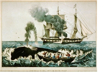 초기 포경업은 주로 해안가에서 이뤄졌다. 작은 배를 타고 바다로 몰려 나가 고래가 지칠 때까지 몇 시간이고 뒤를 쫓아가 호흡이 가빠진 고래가 물 위로 떠오를 때 고래에게 집단으로 작살을 던져 잡는 방식이었다. 하지만 연해에서 고래가 사라지면서 먼바다로 나가게 된다. 먼바다에서 큰 배를 타고 돌아다니면서 고래를 발견하면, 선상의 작은 배를 내려 노를 저어 가서 작살을 던져 사냥하는 방법이었다.