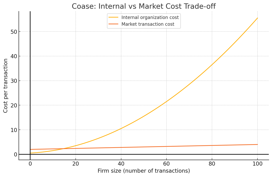 이 논고에서는 이러한 질문에 답하기 위해 **“기업 규모와 거래비용”**을 주제로 다룹니다. 기업이 성장하고 거래를 내부화하는 이유를 설명한 **로널드 코스(Ronald Coase)**의 고전인 「기업의 본질」(The Nature of the Firm, 1937)python-advanced.quantecon.org과, 19~20세기 미국에서 경영조직의 발달로 대기업이 성장한 과정을 분석한 **앨프리드 챈들러(Alfred Chandler)**의 역사서 「보이는 손」(The Visible Hand, 1977)en.wikipedia.org을 이론적 양대 축으로 삼습니다.