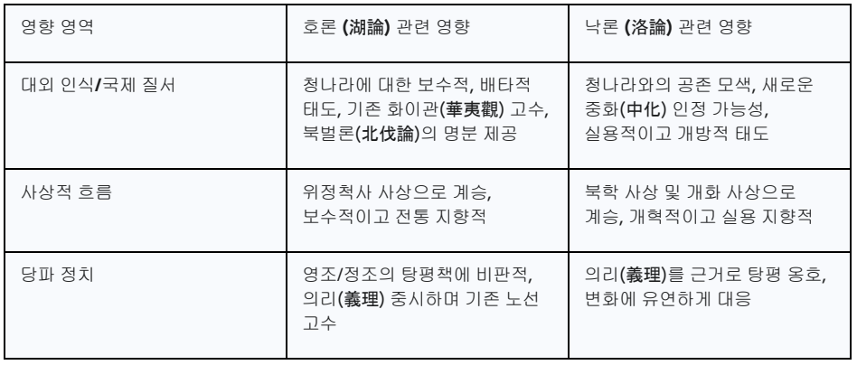 표 2: 호락논쟁의 정치·사회적 영향 요약