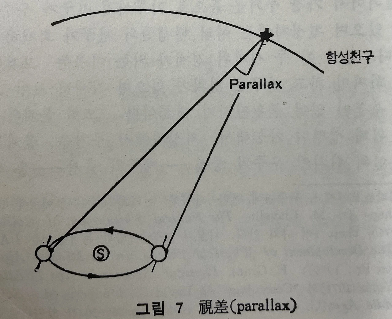 28/ 우선 문제가 되는 것은 무거운 물체가 떨어지고 가벼운 물체가 올라가는 것에 대한 설명이다. 코페르니쿠스의 변혁에 의해 지구가 더 이상 우주의 중심이 아니면 무거운 물체가 굳이 일개 행성에 불과한 지구의 중심을 향해야 할 이유가 없어지게 되기 때문이다... 그뿐만이 아니다. 아리스토텔레스의 우주는 중심인 지구서부터 맨바깥의 항성천구까지가 어느 정도의 거리를 지닌 유한하고 꽉 째인 우주였는데 코페르니쿠스의 변혁은 이것을 깨뜨렸다. 코페르니쿠스의 우주구조 내에서는 지구가 태양 주위를 돌기 때문에 지구에서 별을 관측할 때 지구의 위치의 차이에 따라 그림 7에서 보는 것 같은 시차parallax가 관측이 되어야 한다. 그런데 실제로는 이것이 관측되지 않았고 따라서 코페르니쿠스의 우주구조를 받아들이기 위해서는 지구와 항성천구의 거리가 그동안 생각해 오던 것에 비해서는 아주 멀다는-거의 무한히 멀다는-결론을 내리게 되었으며 이는 결국 우주의 크기가 거의 무한이 되게 만들었다. 그리고 이렇게 우주의 크기가 무한하다면 그러한 우주에 있어서 <중심>과 같은 관념은 더 이상 의미를 지니지 못하게 되는 것이다. 이외에도 그렇게 근본적은 아니었지만 더 직관적인 문제로 만약에 지구가 하루 한 바퀴의 빠른 운동을 한다면 왜 그 위에 사는 사람이 그것을 느끼지 못하는가 하는 문제도 있었고, 왜 지구 위에서 던져 올린 물체가 올라갔다가 다시 떨어지는 동안 지구가 움직였는데도 불구하고 다시 제자리에 떨어지는가 하는 문제도 생겨났다...