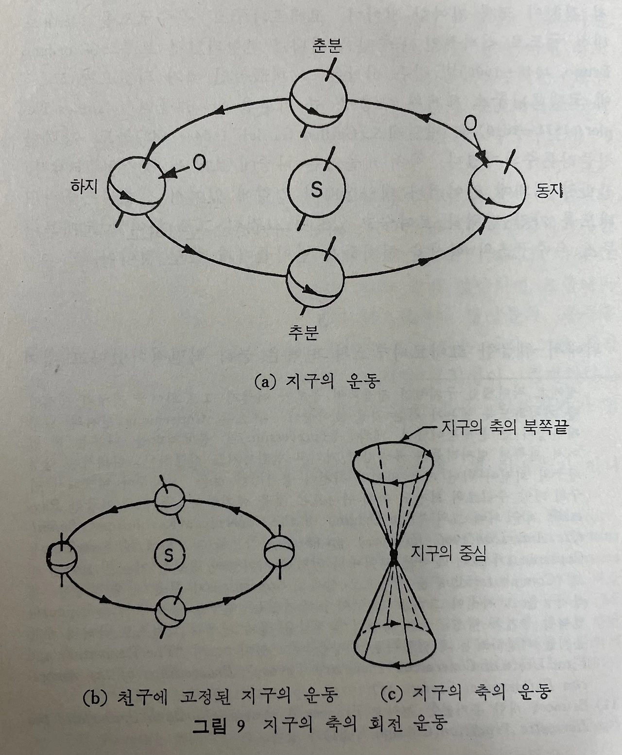 34/ ... 아리스토텔레스-프톨레마이오스 우주구조의 기본요소인 천구는 그대로 존재했고 행성과 지구는 여전히 이 천구들에 고정되어 돌도록 되어 있었다. 더구나 당초 별자리의 하루 한 바퀴의 회전을 나타내 주기 위해 도입되었던 항성천구가 지구의 자전에 의해 더 이상 소용되지 않은데도 그대로 정지한 채 남겨져 있게 되었다... 이 세번째 회전운동이 필요없었으리라는 것은 더 말할 나위도 없다...