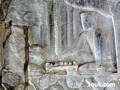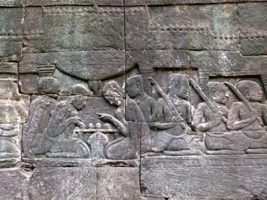 그런데 여기서 재미있는 것은 상기의 네 노인을 상산사호(商山四皓)로 유추하게 만든다는 것이다. 따라서 이 상산사호가 어떤 의미인지 조사하는 수고를 하여야 했다. (아래 부기 참조). 그러나 상산사호의 고사 보다는 귤과 장기의 관련성에 대해 직시를 하고자 한다면, 다음의 동남아시아 유적의 벽화를 한 번 보면 그만이다.