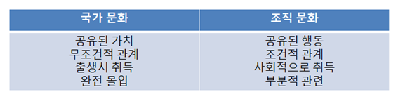 표 2.2 조직 문화와 국가 문화의 비교