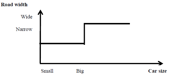 그림 5의 해결책은 그림 6에서 도해되는 바와 같이 노폭과 차량 크기라는 두 가지 변수 간에 종속성을 생성합니다.