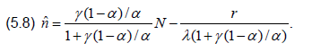nt와 nt+1사이의 시간적 관계는 방정식 (5.2), (5.5) 및 (5.6)을 조건 wt = λVt+1에 대입하여 결정된다. 그 결과로 다음이 유도된다.