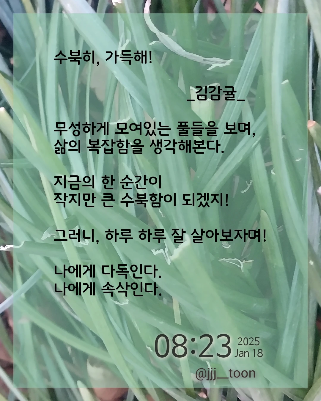 김감귤의 브런치입니다. 시, 짧은 글, 일기를 쓰기도 하며, 자유롭게 글을 쓰고 생각을 표현하는 활동을 좋아합니다. 개인 가치관이나 경험에 비춰 글을 읽을 수 있다고 생각합니다.