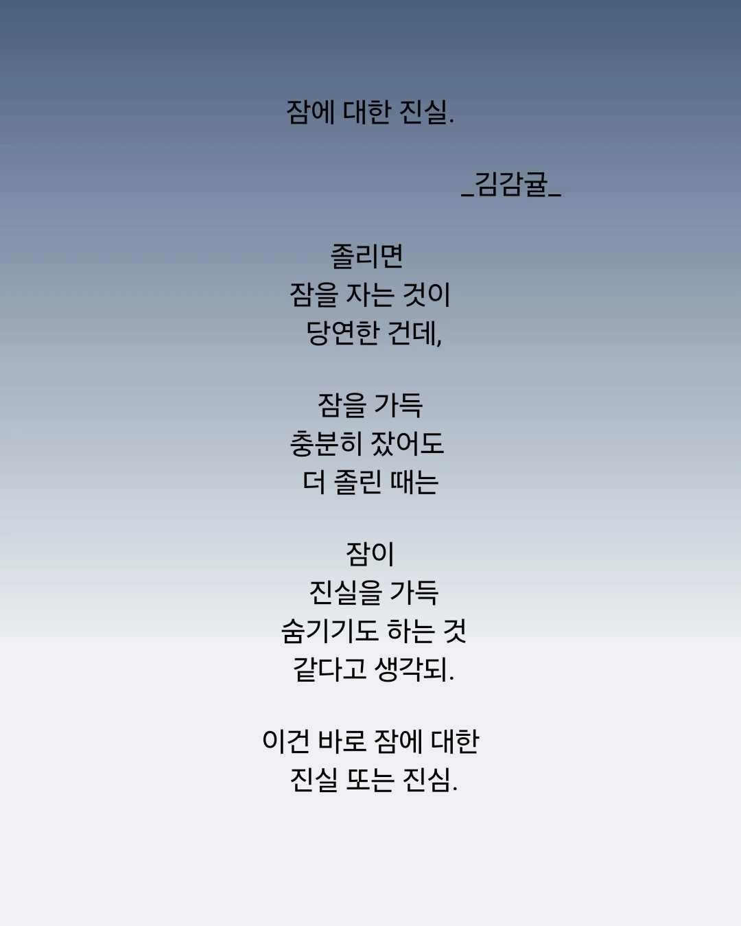 잠에 대한 생각 하나를 시로 표현해 보다.
