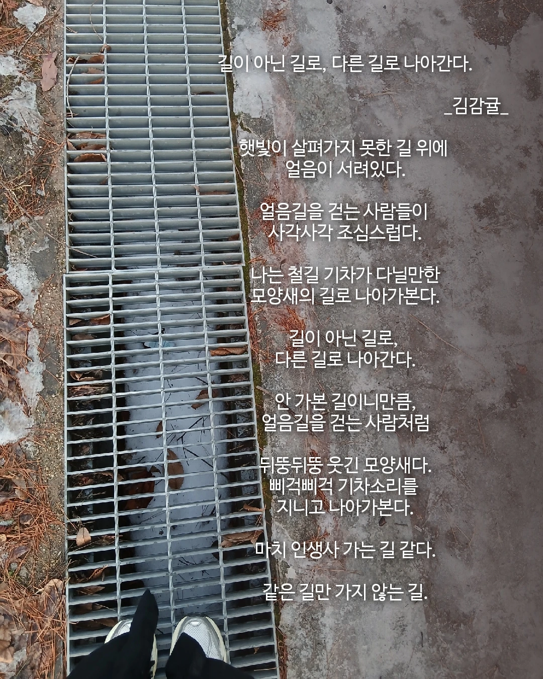 길, 그냥 아무 생각 없이 가는 길이다. 이런 길이 날씨로 인해 조금 불편한 길이 되어 버렸다.