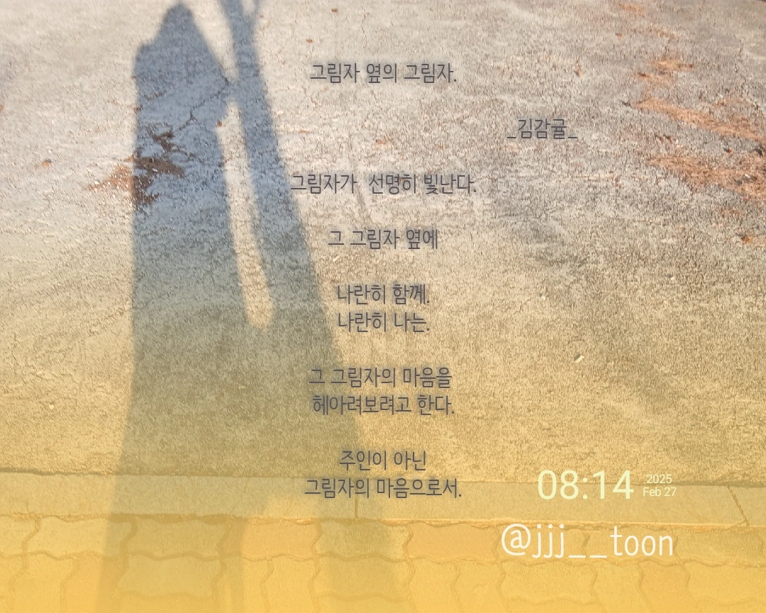 생각이 든 마음을 그림자에 빗대어 시로 표현해 보다.