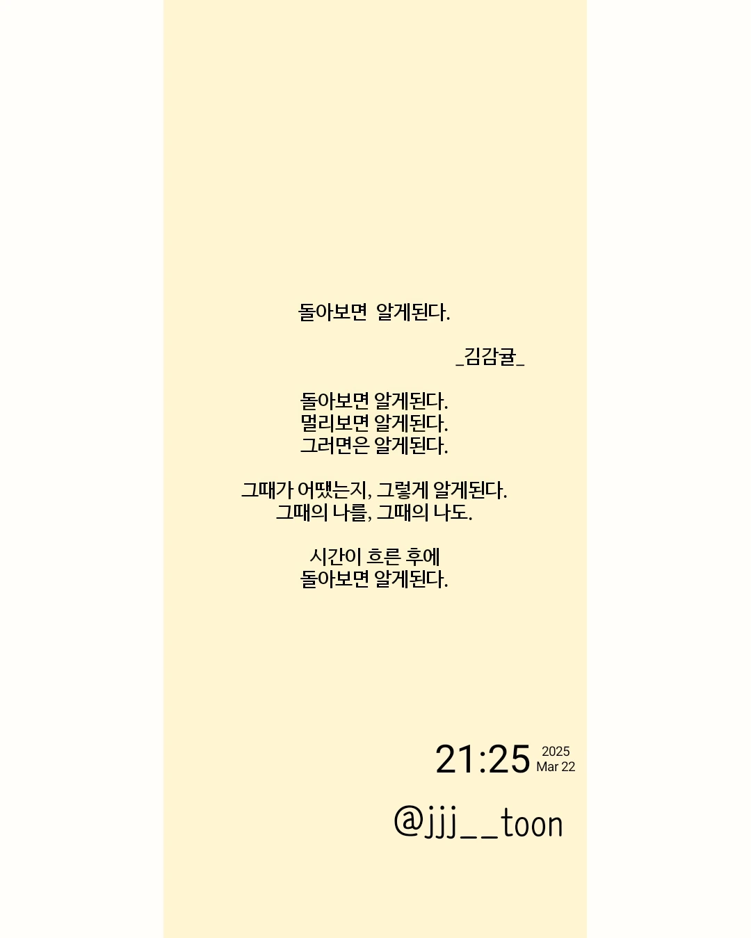 '무엇이든 조금 한 발자국 물러나서 어느 정도 시간이 지나서 돌아보면 다르게 보인다.'는 부분을 생각해 보며 시로 표현해 봤다.