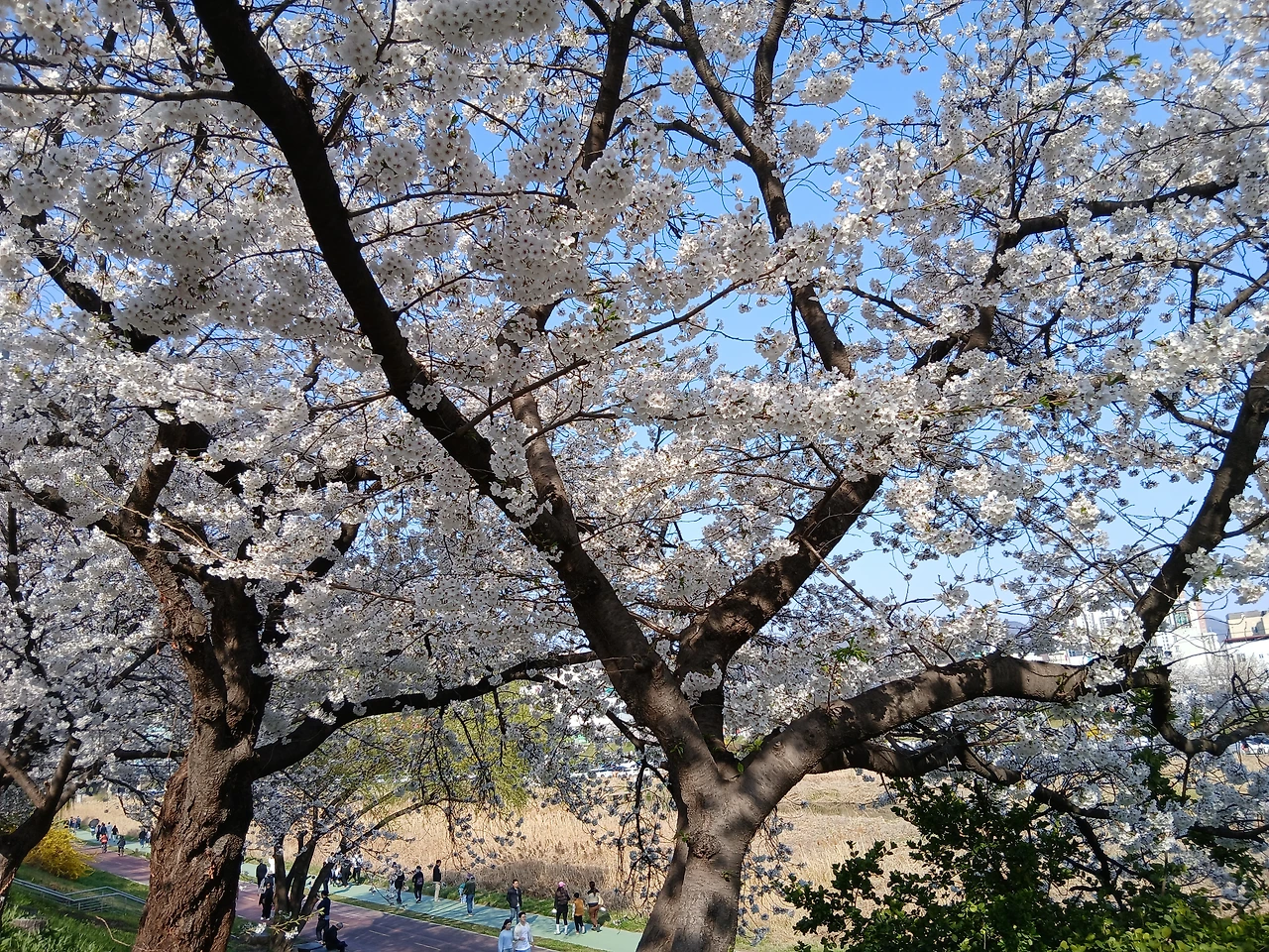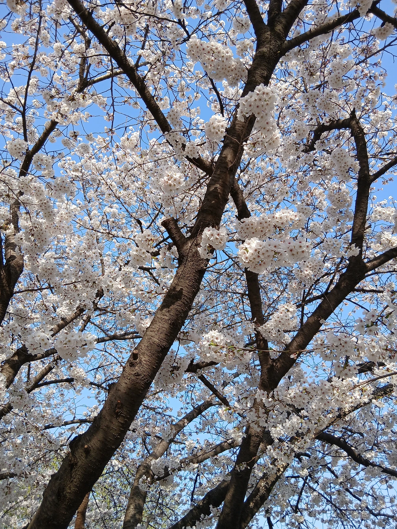 벚꽃을 낮에도 밤에 한 번씩 보고, 오늘 또 한 번 낮에 봤는데 그 풍경은 봐도 봐도 똑같지 않고 좋았던 것 같다. 그 사진들도 함께 이 브런치에 담아봤다.