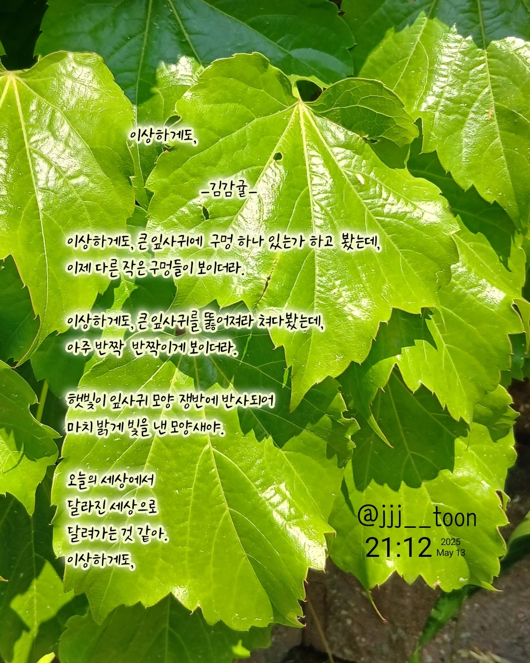 이상하게도, 큰 잎사귀를 뚫어져라 쳐다봤는데,